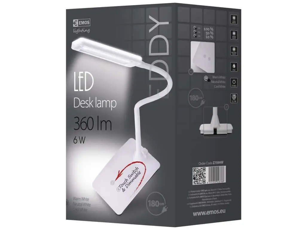 Stolové svietidlo Emos Z7599W LED 6W 360lm 3000K/4500K/6800K 230V IP20