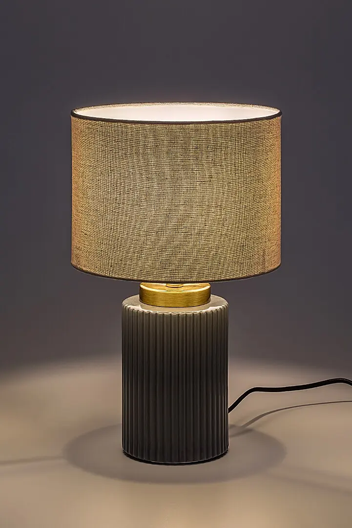 Stolnú lampu Rabalux Glovy odporúčame tým, ktorí hľadajú starostlivo navrhnuté doplnkové svietidlo do spálne alebo obývačky. Vďaka striedmym farbám sa tento model hodí do širokej škály interiérov. Môžete ju umiestniť na nočný stolík alebo na stôl. Svietidlo je vyrobené zo sivej keramiky s rebrovaným vzorom, zatiaľ čo tienidlo tvorí biely textil. Tienidlo je valcovité a otvorené v hornej a dolnej časti. Vďaka svetlej farbe tento model prepúšťa veľa svetla, takže sa dá použiť aj ako lampa na čítanie. Možno ho prevádzkovať s jednou žiarovkou s príkonom do 40 W. Typ pätice je E14. Nočné svietidlo je doplnené čiernym textilným káblom a káblovým spínačom. Dodáva sa bez svetelného zdroja. Stolové svietidlá