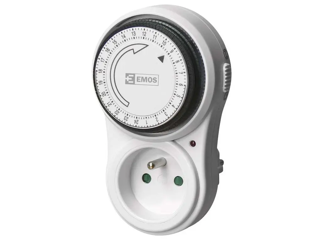 Táto mechanická spínacia zásuvka, alebo časovač, je ideálny pre nastavenie zapnutia a vypnutia akýchkoľvek elektrických spotrebičov. Je spoľahlivý aj vo Vašej neprítomnosti.