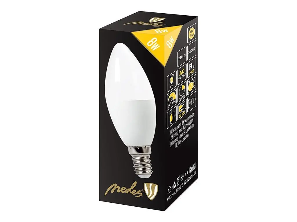 LED žiarovka Nedes ZLS714 8W E14 710lm 3000K 230V sviečková, teplá biela